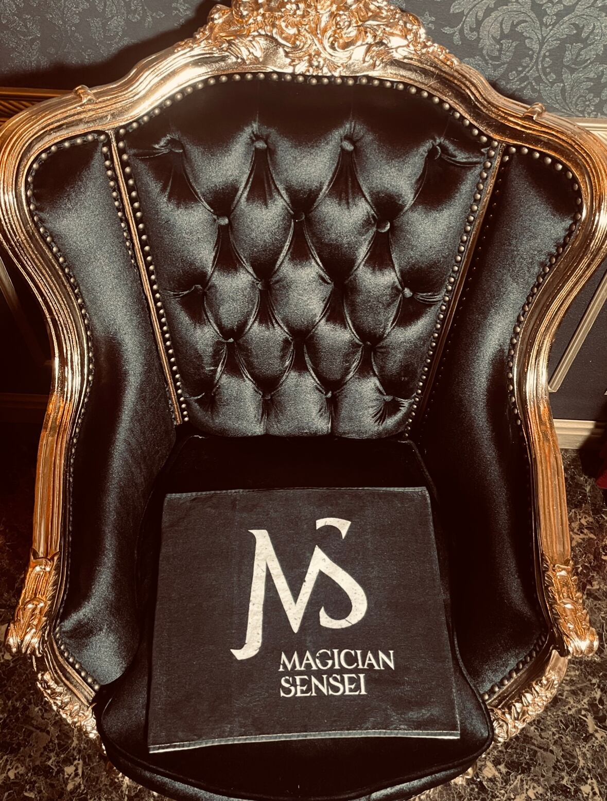黒地にマジシャン先生のロゴが大きくプリントされたデザインとなっています。
